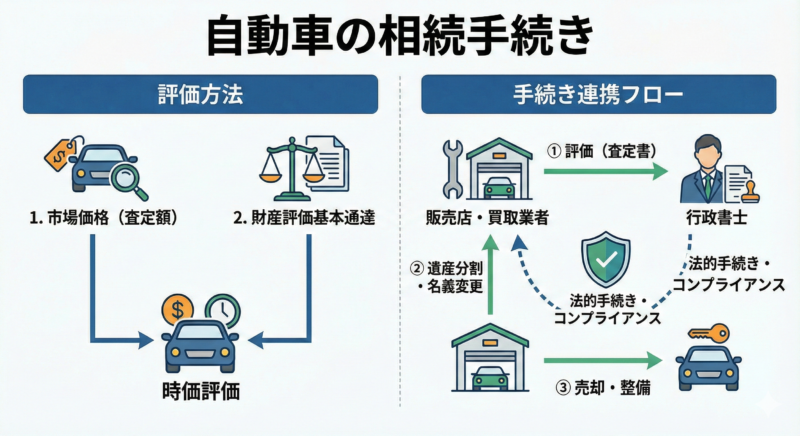 中古自動車の相続は、単なる名義変更手続きに留まらず、適切な財産評価と、法令に則った書類作成が必要となる手続きです。