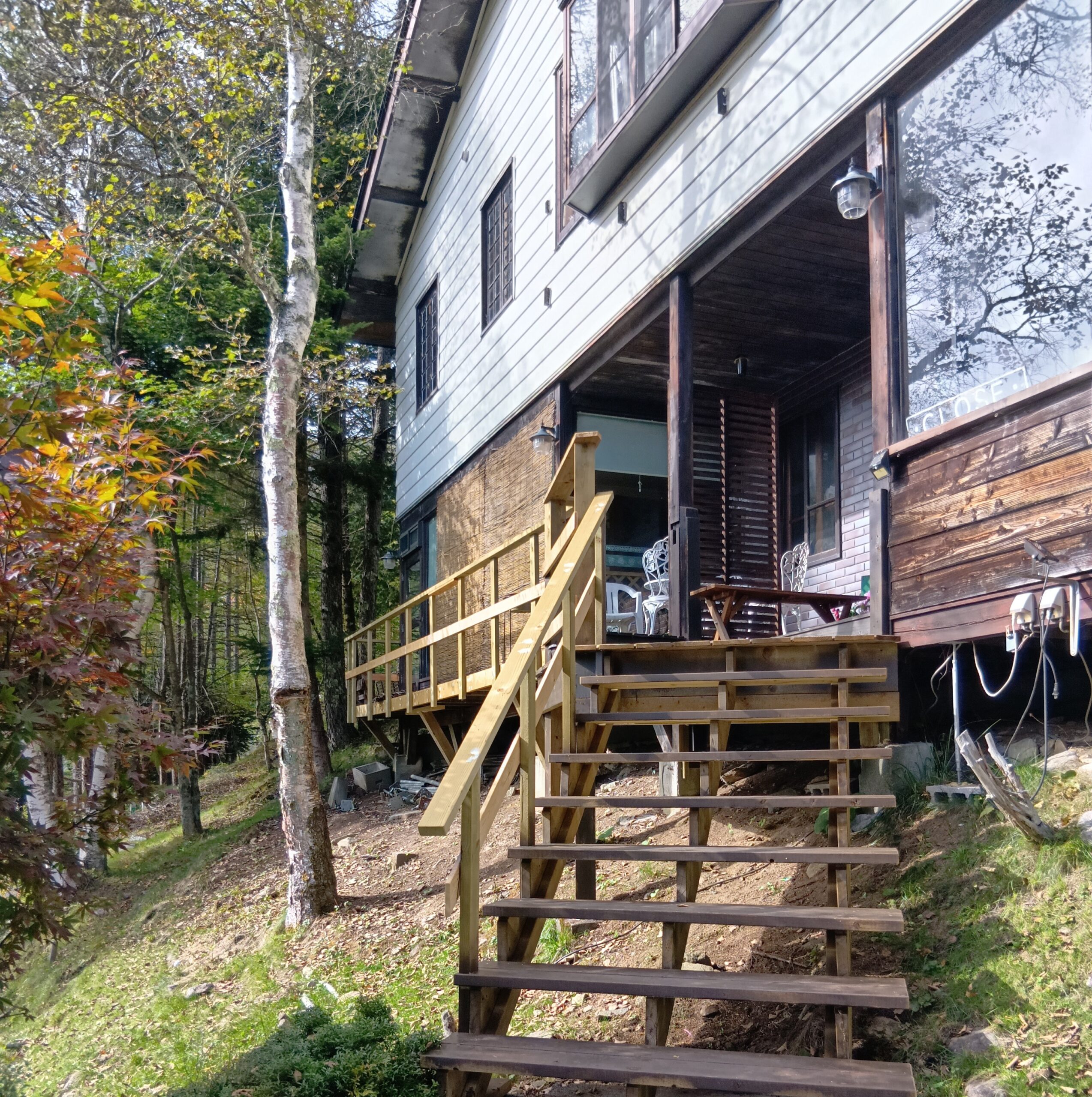 しらかば綜合事務所は、白樺湖のほど近く、しらかば林の中にあります。